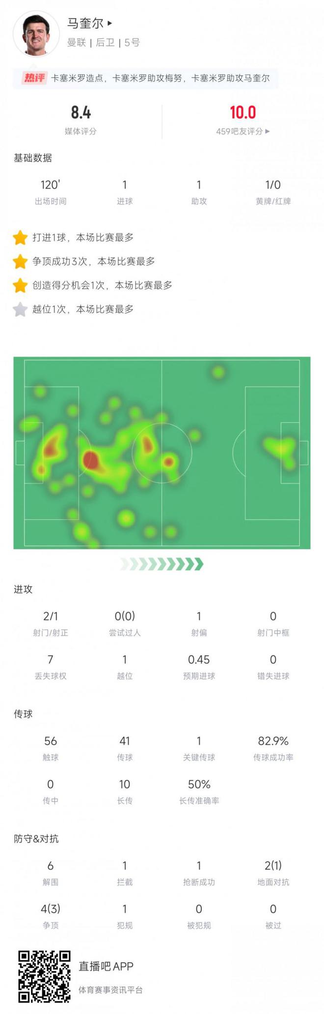 最強中鋒已在陣中??馬奎爾數據:2射1正補時絕殺 4次爭頂3成功