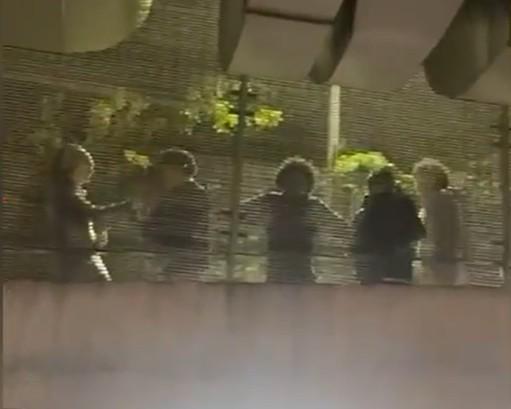 從巴士處拍攝的視頻顯示,五名男子站在巴黎巴士停放的停車場(chǎng)外的圍欄后面,大聲喊叫、捶胸頓足、抓撓腋窩,就像在模仿猴子的動(dòng)作。