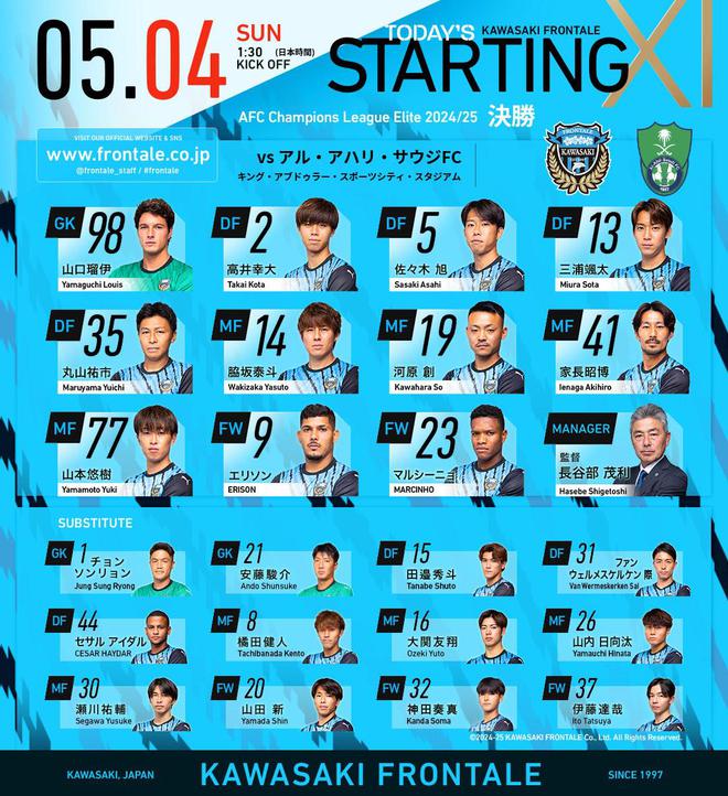 北京時(shí)間5月4日亞冠日報(bào)宣報(bào)0:30,亞冠精英決賽,吉達(dá)國民對陣川崎前鋒。賽前首發(fā)公布。