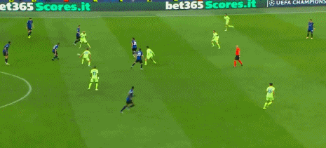 第30分鐘,巴雷拉邊路失誤被斷,拉菲尼亞橫傳被巴斯托尼下鏟解圍