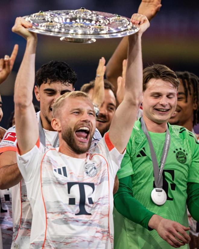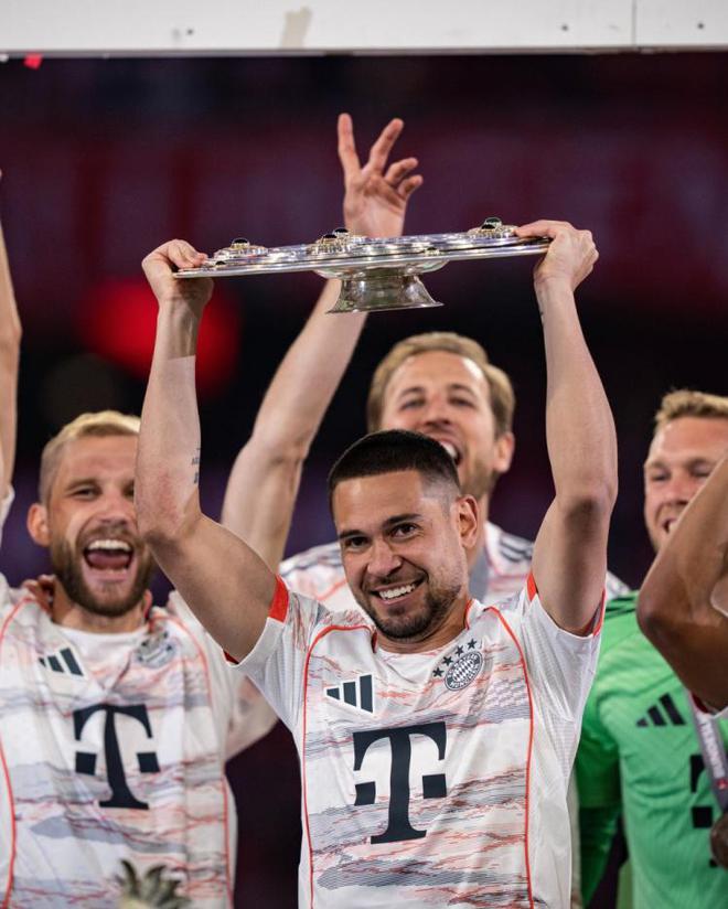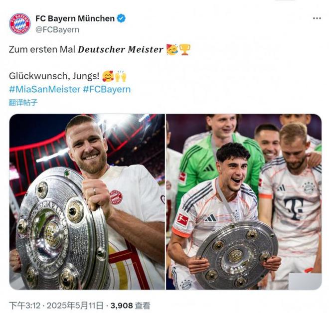 5月11日德甲日報宣報訊 拜仁官方更新社媒動態(tài),曬出贏得職業(yè)生涯首個德甲冠軍隊內(nèi)成員的捧杯照片,孔帕尼、凱恩領(lǐng)銜。