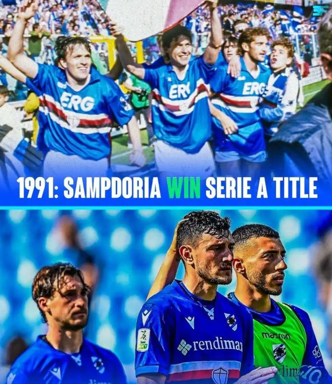 桑普利亞成立于1946年,是球迷熟悉的前意甲勁旅,他們曾在意甲征戰了長達65個賽季,和熱那亞之間的德比戰也是意甲德比名場面之一。91-92賽季,在曼奇尼,維亞利等名將的帶領下,桑普利亞力壓群雄捧起了意甲冠軍;還在那個賽季打進了歐冠決賽,可惜在加時當中,科曼任意球絕殺,桑普不敵巴薩,從而無緣歐冠冠軍