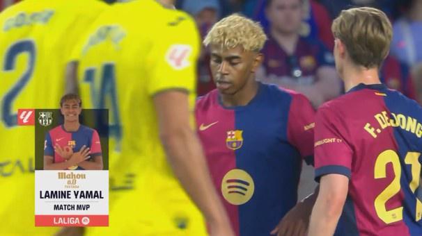 1進球+7過人成功,亞馬爾當選巴薩2-3比利亞雷亞爾一役全場最佳