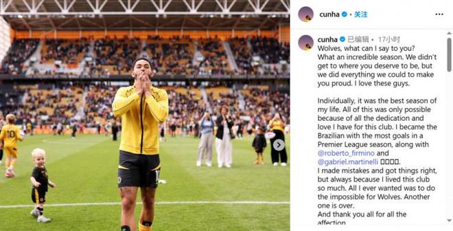 我犯過錯誤,也做過正確的事情,但我始終熱愛這家俱樂部,我一直以來的愿望就是幫助狼隊實現不可能的事情,又一個賽季結束了。
