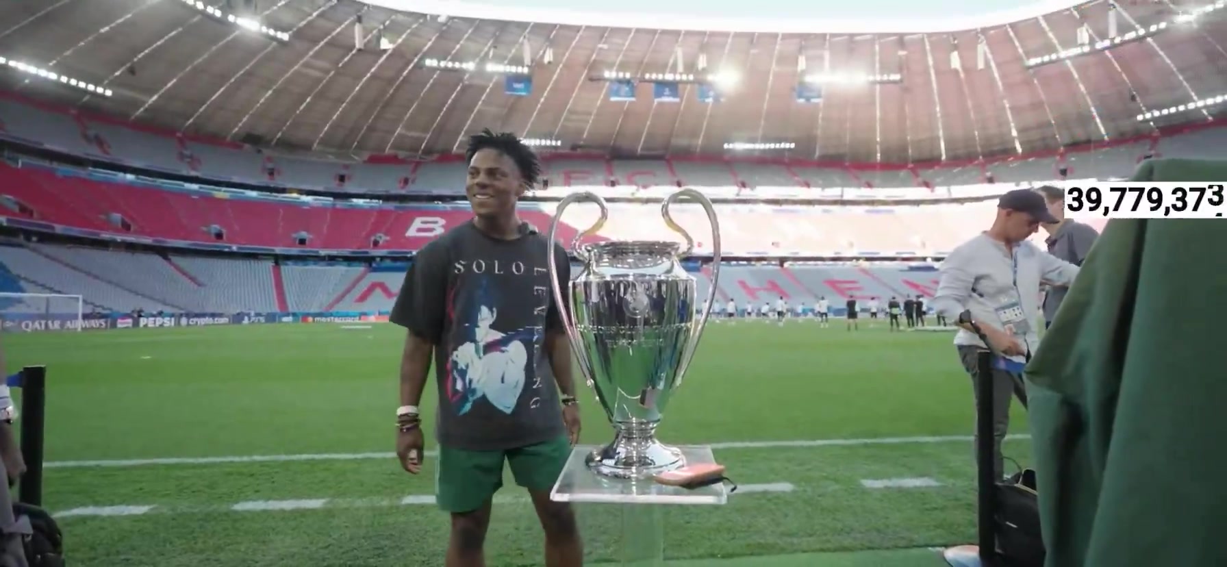 網(wǎng)紅Speed擅自捧起歐冠獎杯大耳朵杯,隨后工作人員告知別碰