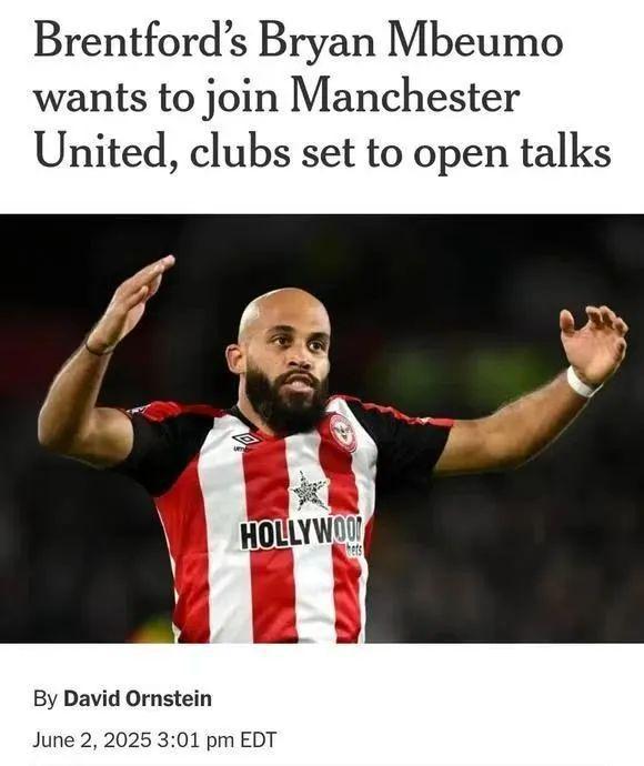 《The Athletic》名記大衛-奧恩斯坦報道,布倫特福德頭號射手姆貝莫決定加盟曼聯,現在兩家俱樂部將就轉會費展開談判,以達成協議。