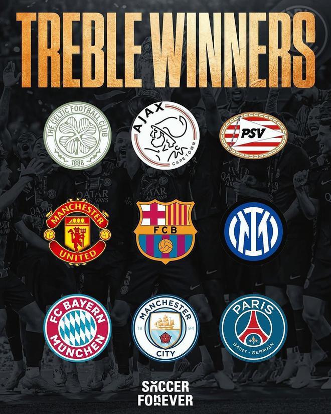 巴黎奪得本賽季歐冠冠軍,成為歐洲足壇第11支三冠王球隊,同時也是第9個實現三冠王偉業的歐洲俱樂部。