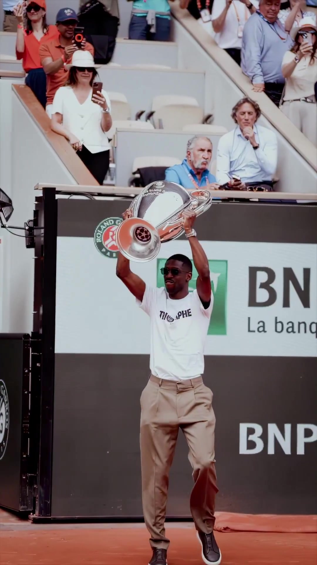 登貝萊現身法網,現場展示歐冠冠軍獎杯