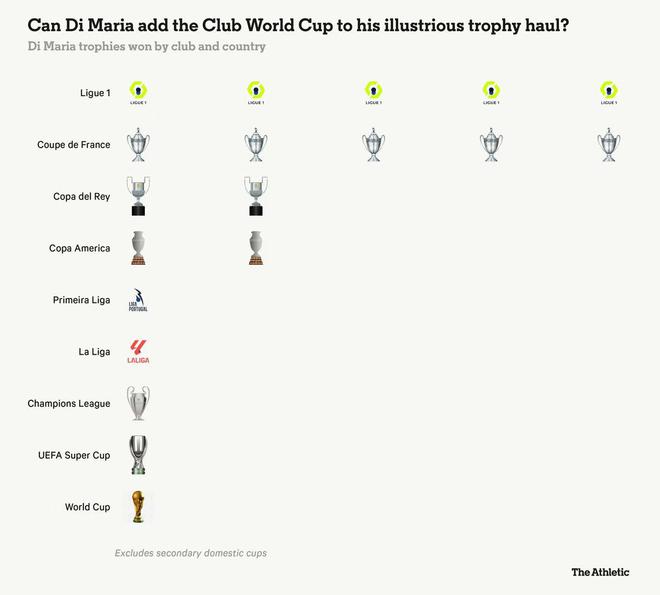 迪馬利亞從羅薩里奧開始職業生涯,隨后加盟本菲卡,接著在皇馬、曼聯、巴黎圣日耳曼和尤文圖斯等豪門度過了13年巔峰期。