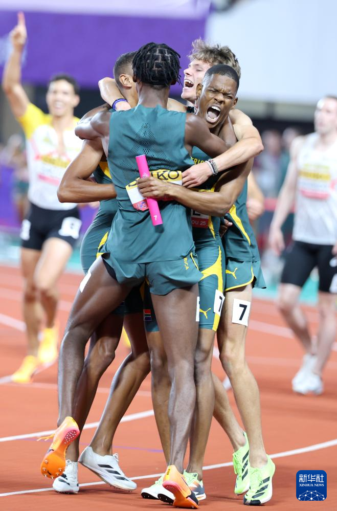 當(dāng)日,在廣州天河體育中心舉行的2025年世界田聯(lián)接力賽男子4x400米決賽中,南非隊(duì)以2分57秒50的成績(jī)獲得冠軍。