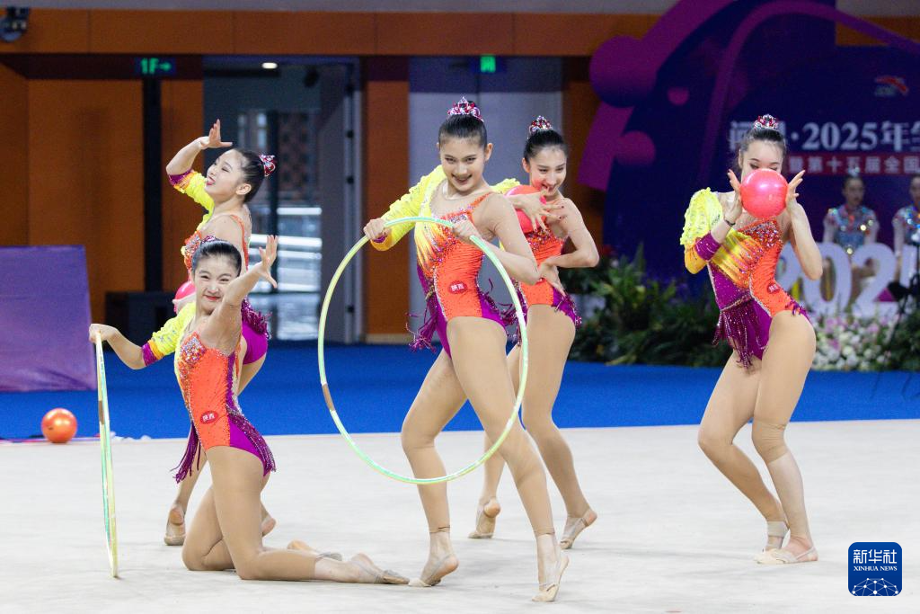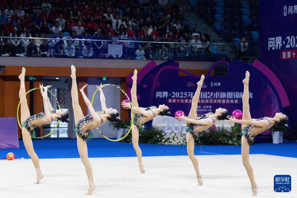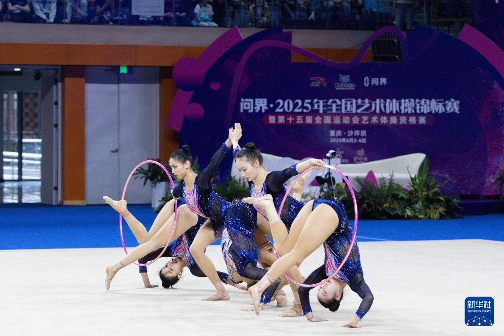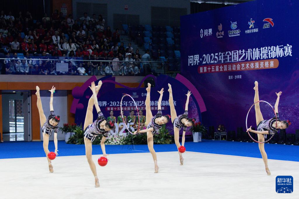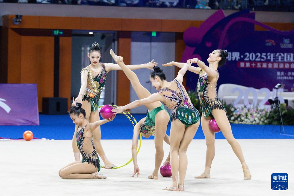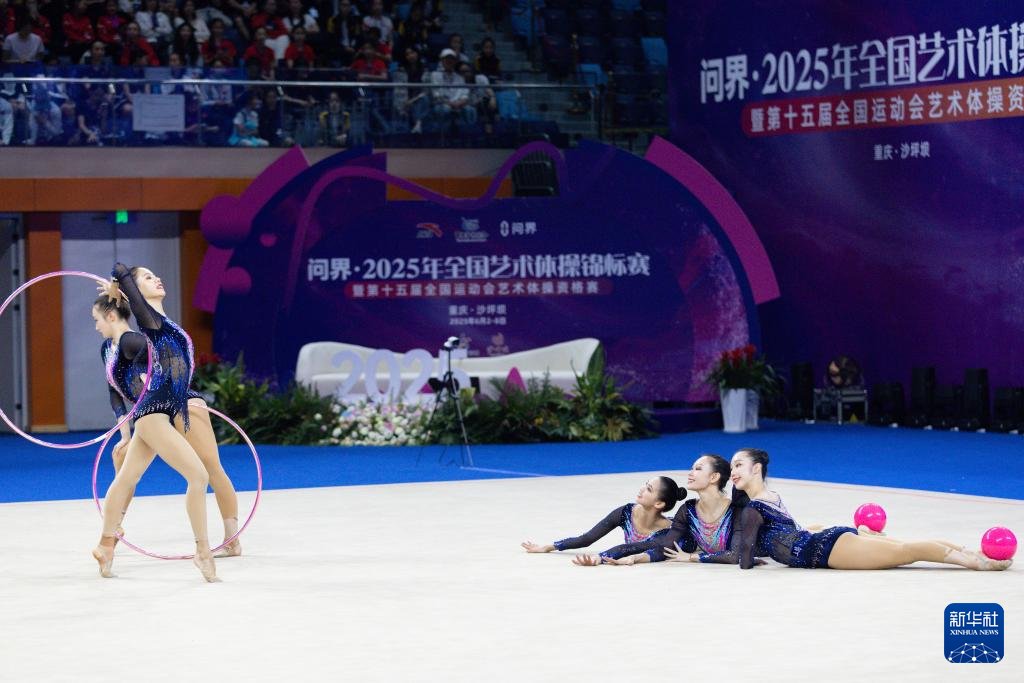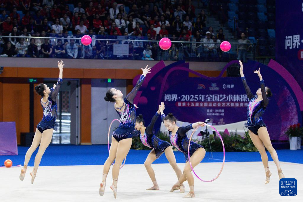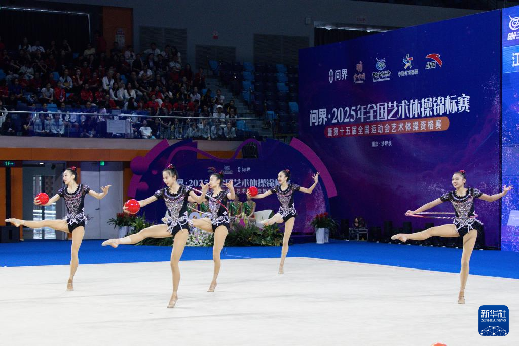 當日,2025年全國藝術體操錦標賽暨第十五屆全國運動會藝術體操資格賽成年集體3球2圈決賽重慶市沙坪壩區舉行。